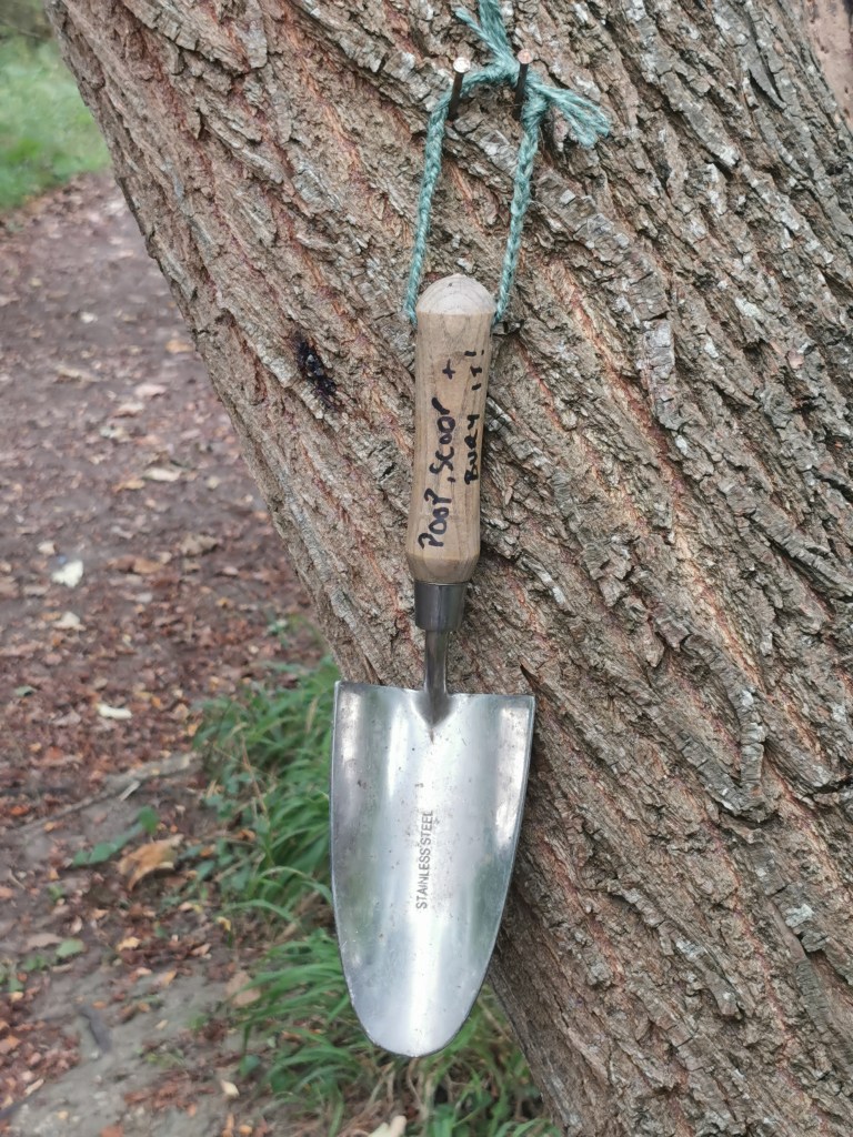 The other thing that drives me mad is the relatively new practice of picking up dog poop in bags… Its foul to do. Creates unnecessary litter. Causes people to hang said bags on trees under the false promise of returning to collect them. Results in bins full of bags of poop, which subsequently the bin men have to empty and deposit on the rubbish tip. There to simply sit on a mound without decomposing naturally… Ugh! So I took it upon myself to think of a better solution and came up with this: